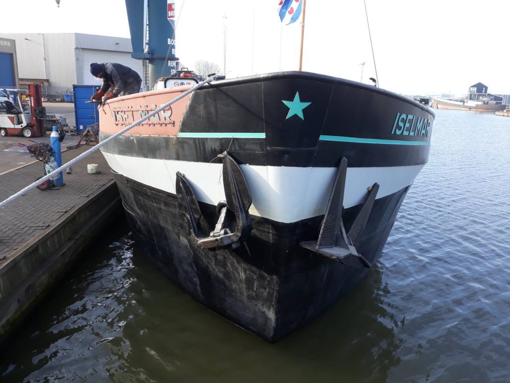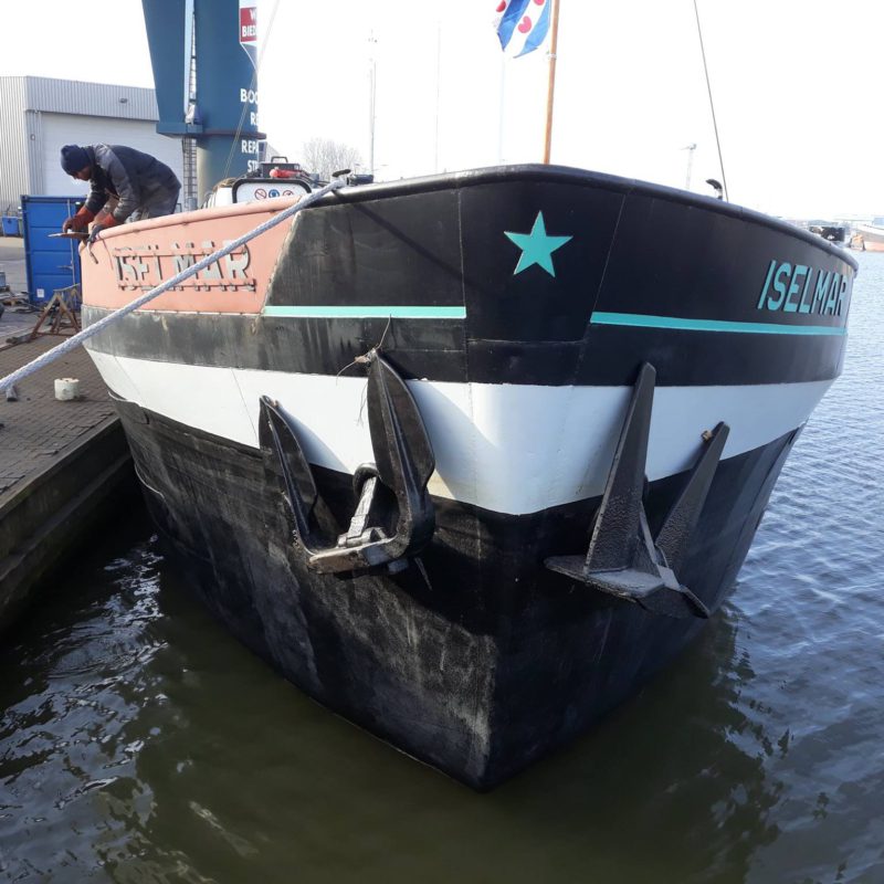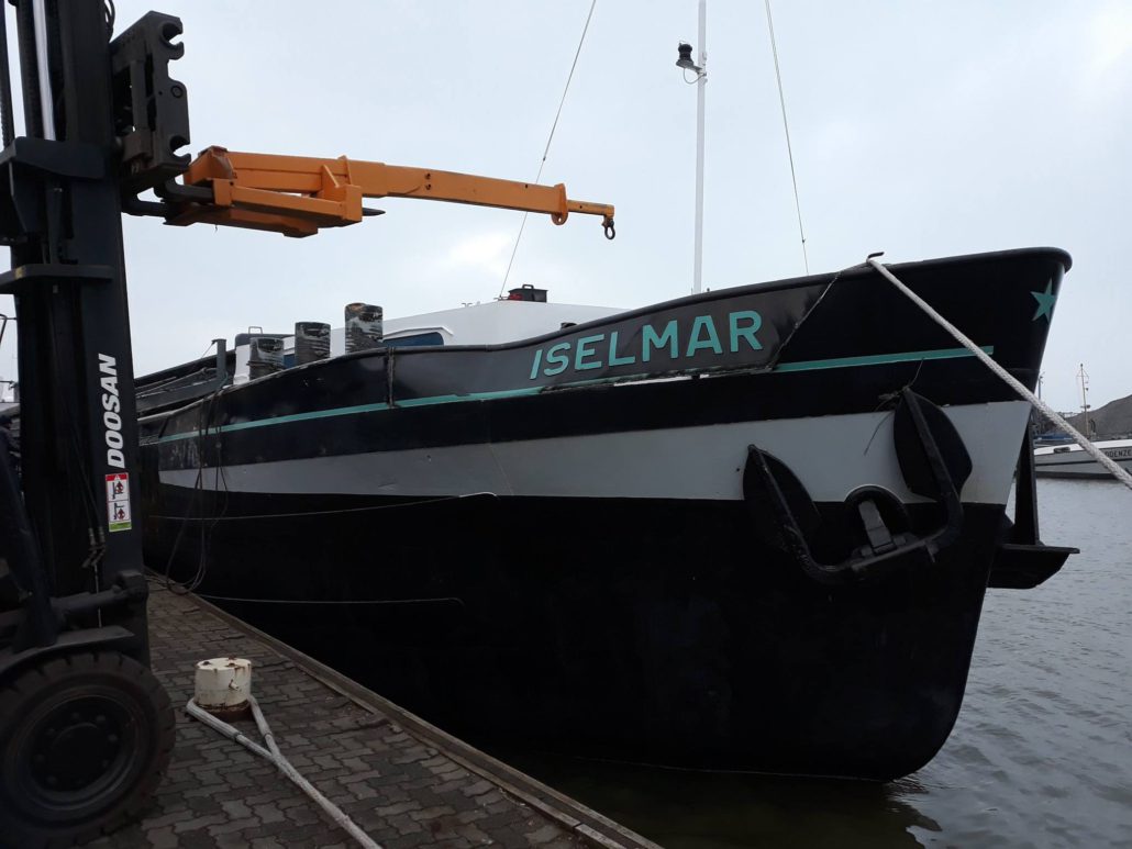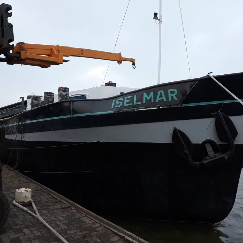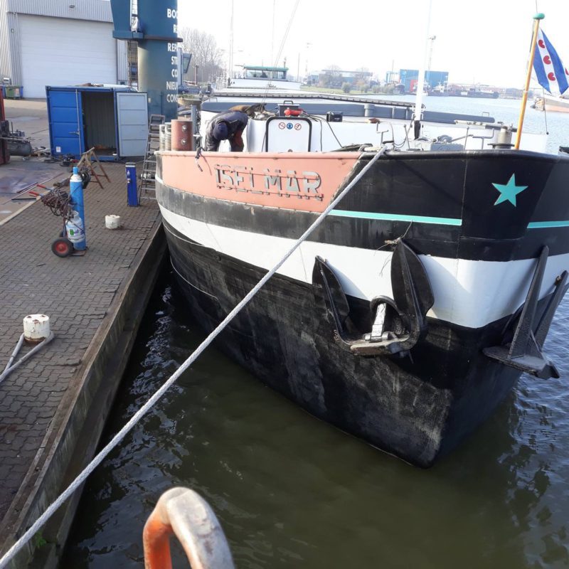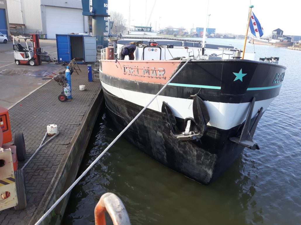 Het binnenvaartschip “Iselmar” met een lengte van 70 meter hebben wij voor de kade gehad voor een boegreparatie. Opdracht in samenwerking met Frans de Boer !