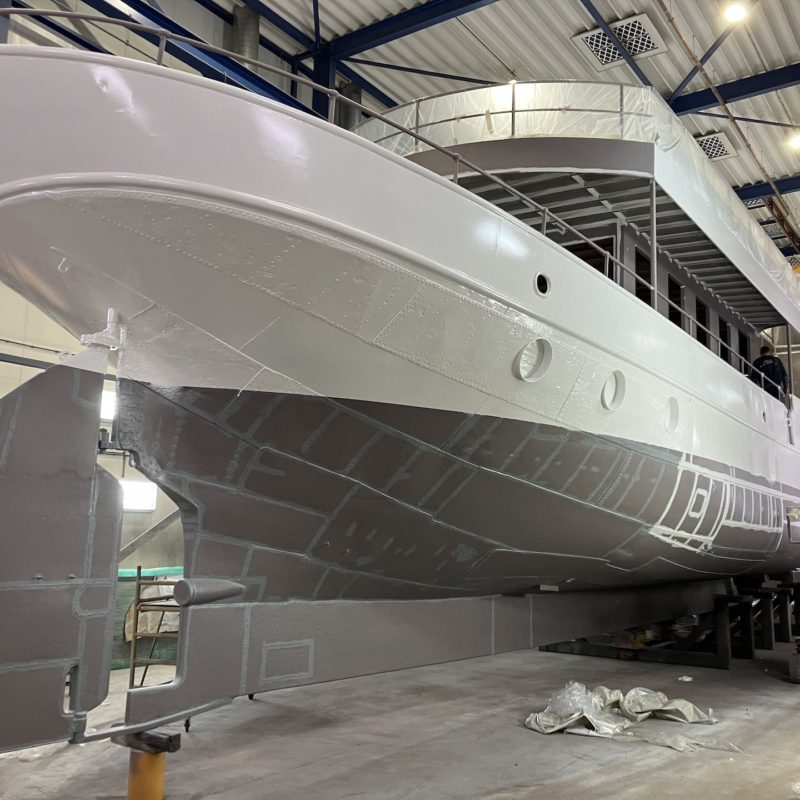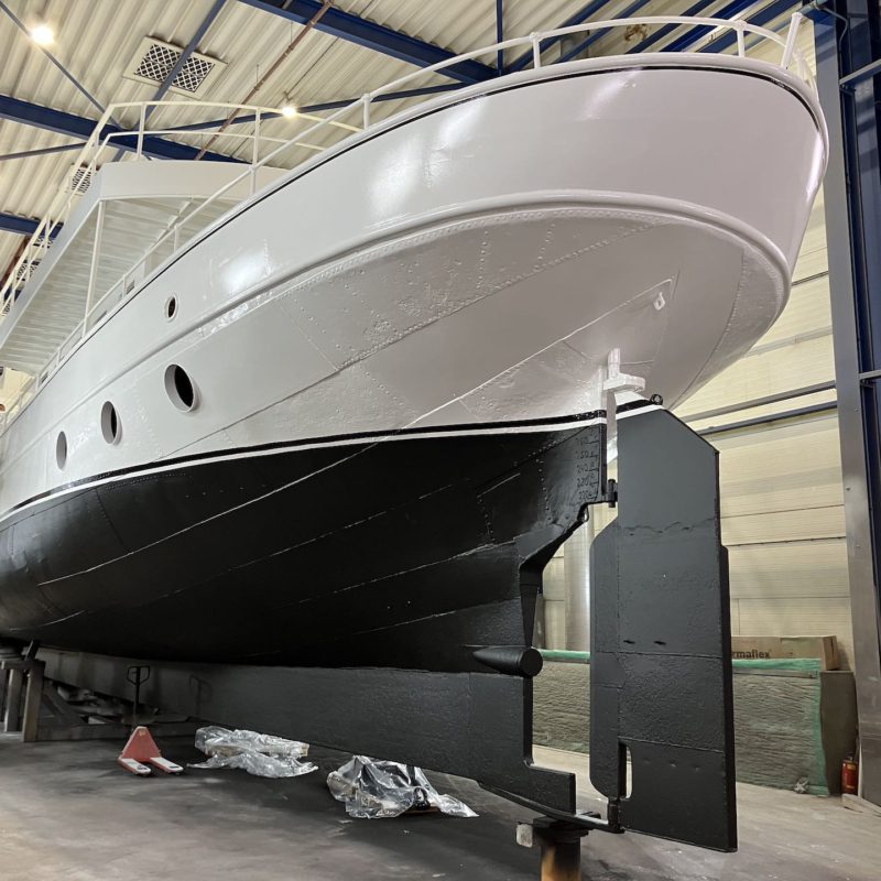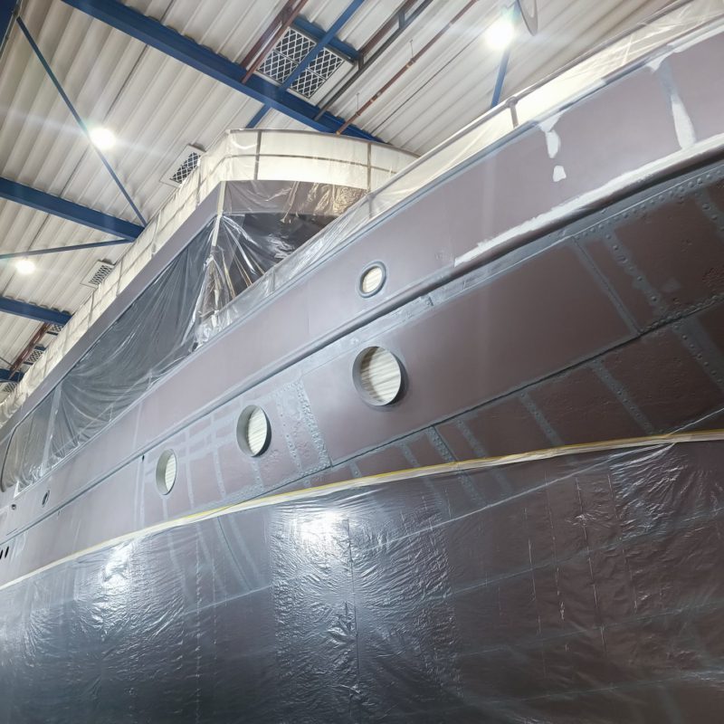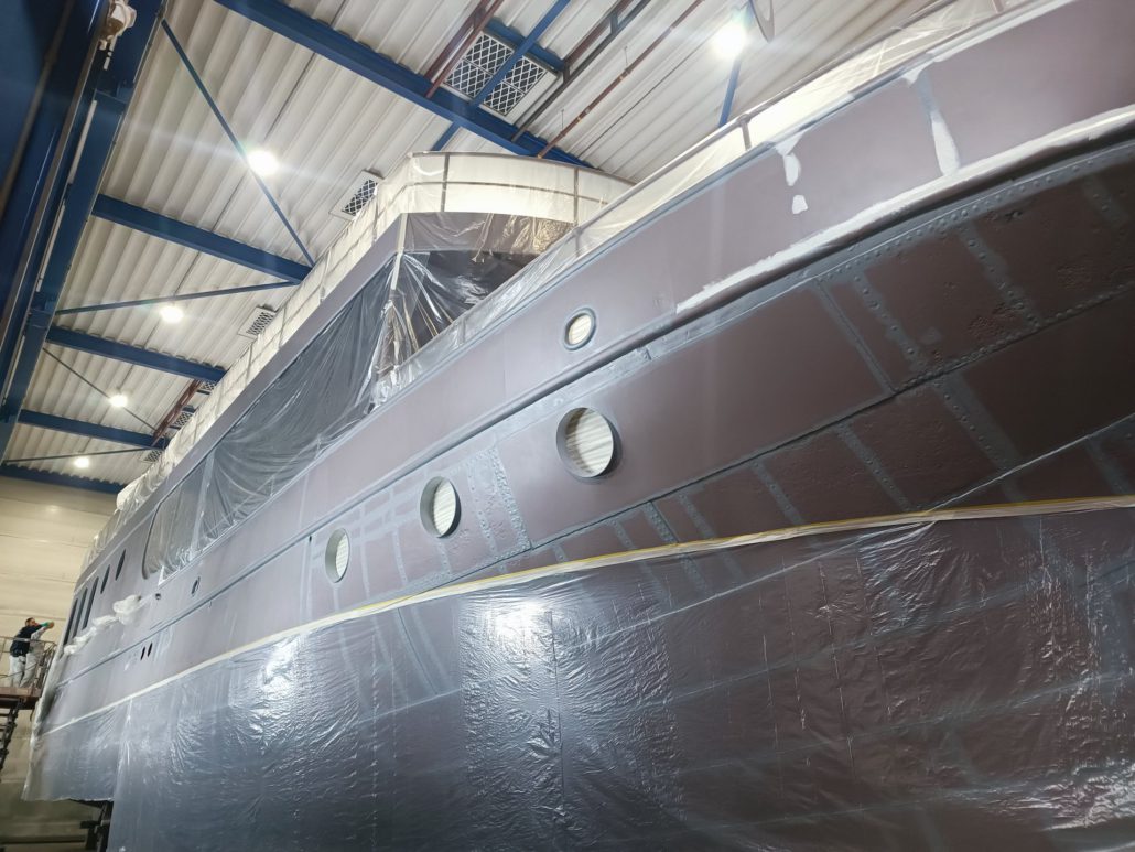 Het onderwaterschip is gestraald en voorzien van een 4-laags verfsysteem. De overige delen van de buitenzijde (romp, dekken en opbouw) zijn gestraald tot een SA2,5 reinheidsgraad en daarna beschermd met drie lagen primer en afgewerkt met een hoogglans witte Hempathane aflak.