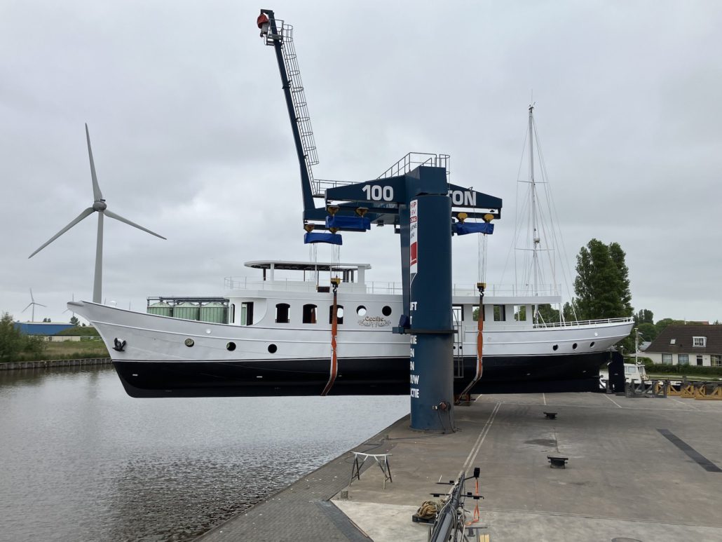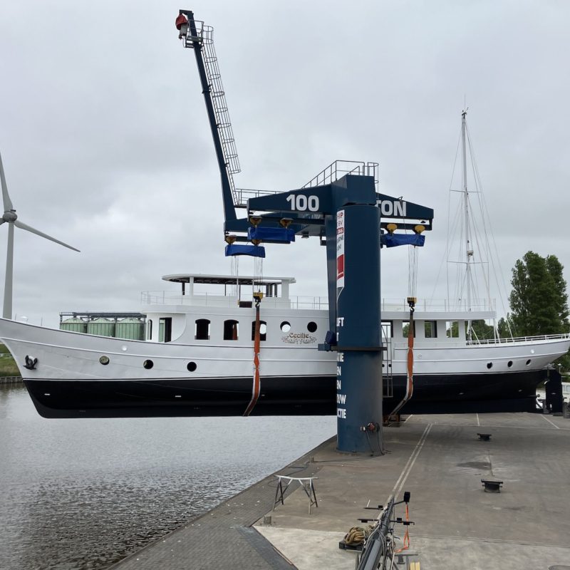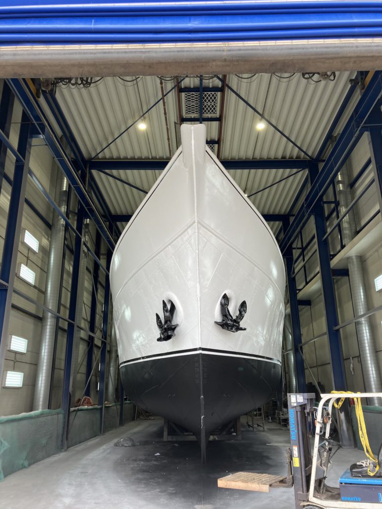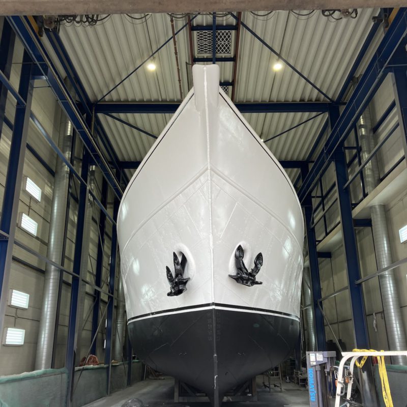 Voor onze klant SRF hebben we deze prachtige schoener (afmetingen 35 x 5.62 meter) voorzien van een volledig nieuw verfsysteem.