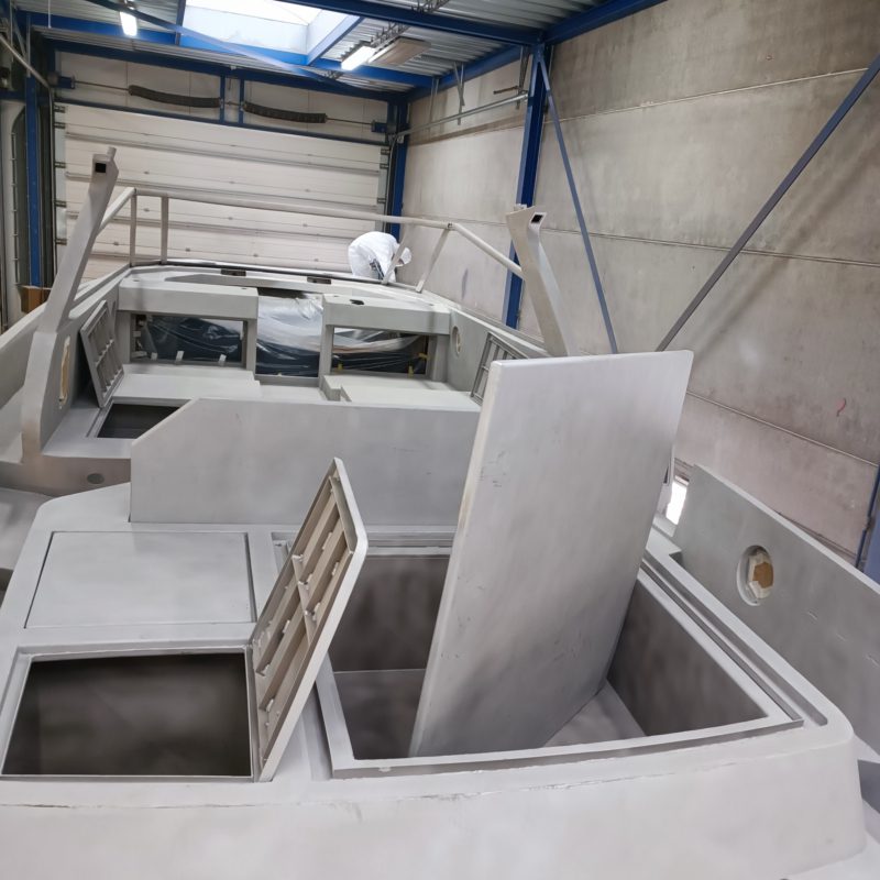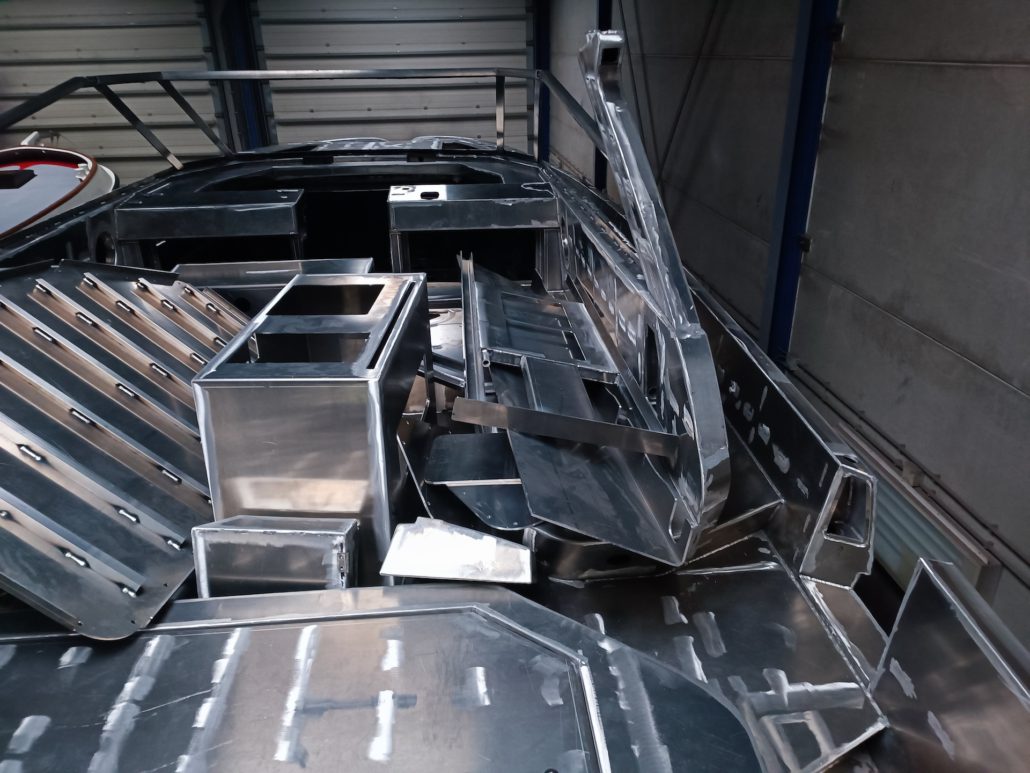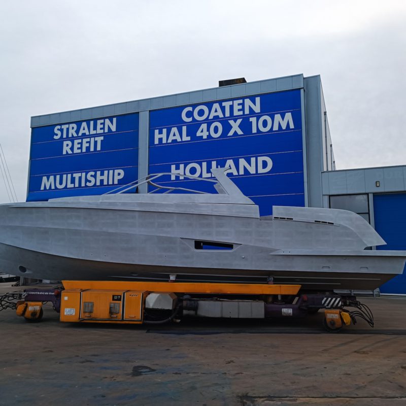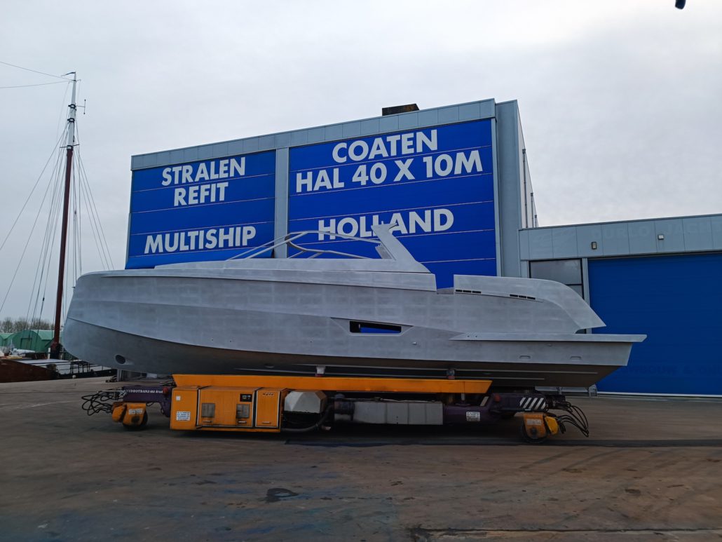 De eerste in een reeks van het nieuwste model van Steeler, genaamd de “Iconic DA53”, is door ons gestraald en voorzien van een primer (Interprime 820). Het betreft een aluminium romp. Alle losse onderdelen zijn keurig uitgelegd, gestraald en voorzien van een laag Interprime 820.