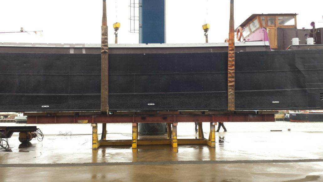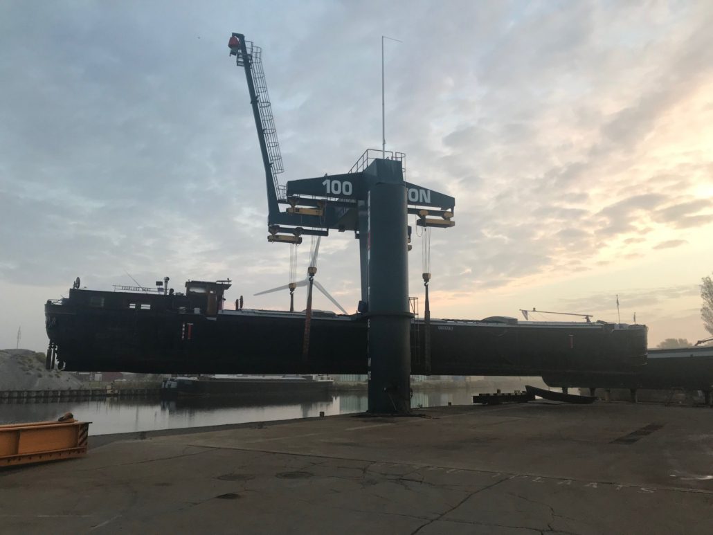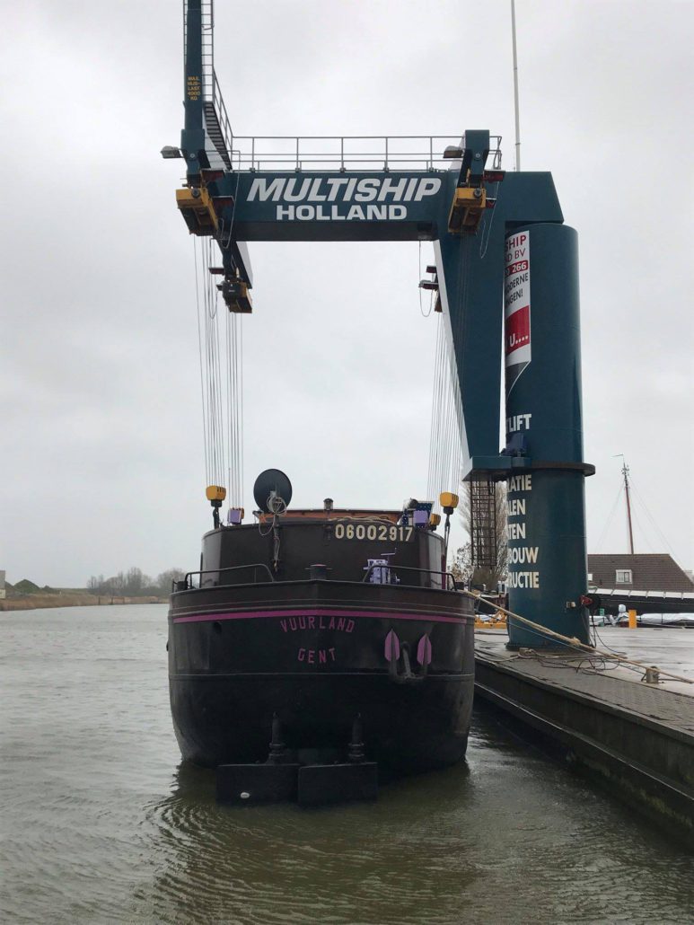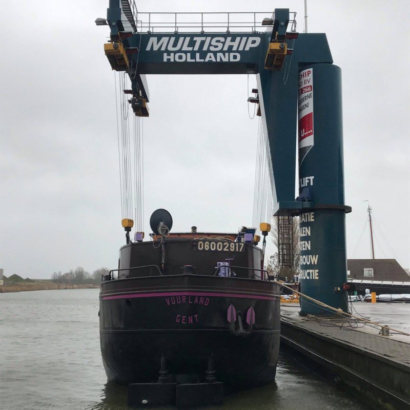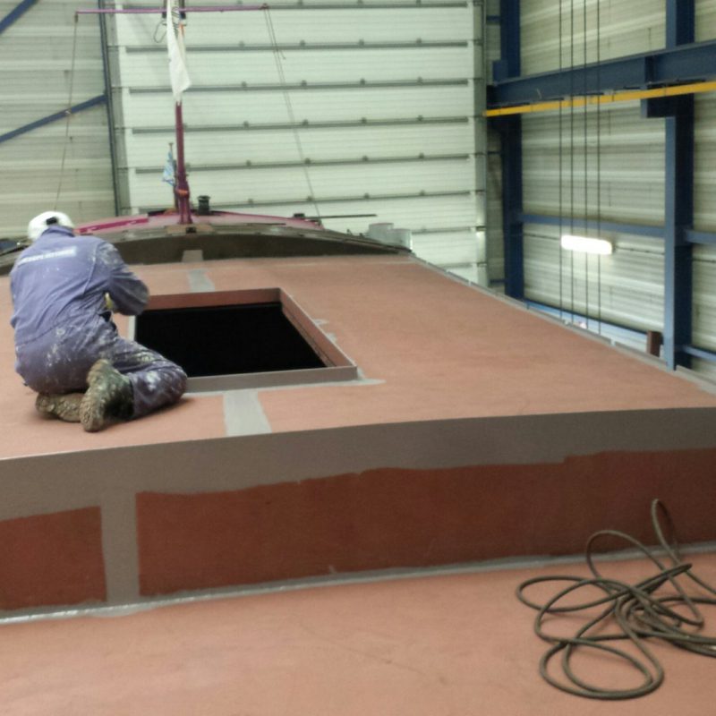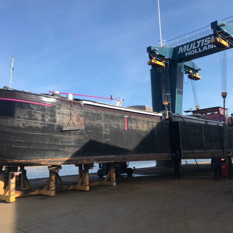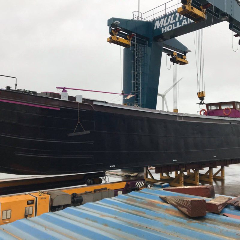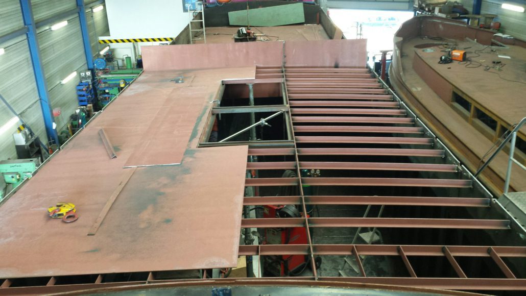 De spits “Vuurland” met een originele lengte van 39 meter is bij ons op de werf ingekort naar 30 meter, voorzien van een nieuw stalen dak ter vervanging van de aluminium luikenkap met verlaagd dakterras. De romp inclusief het onderwaterschip is na de noodzakelijke dubbelingen, gestraald en voorzien van een 3-laags Hempel verfsysteem.