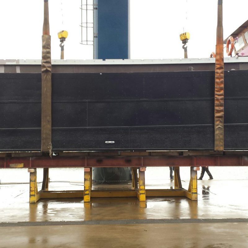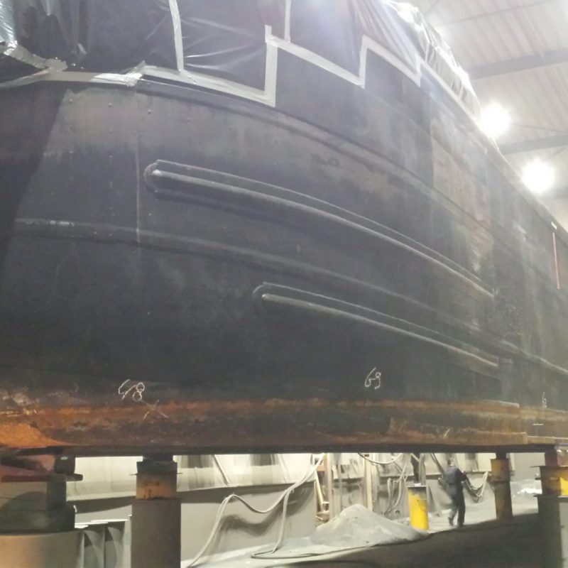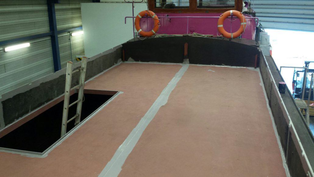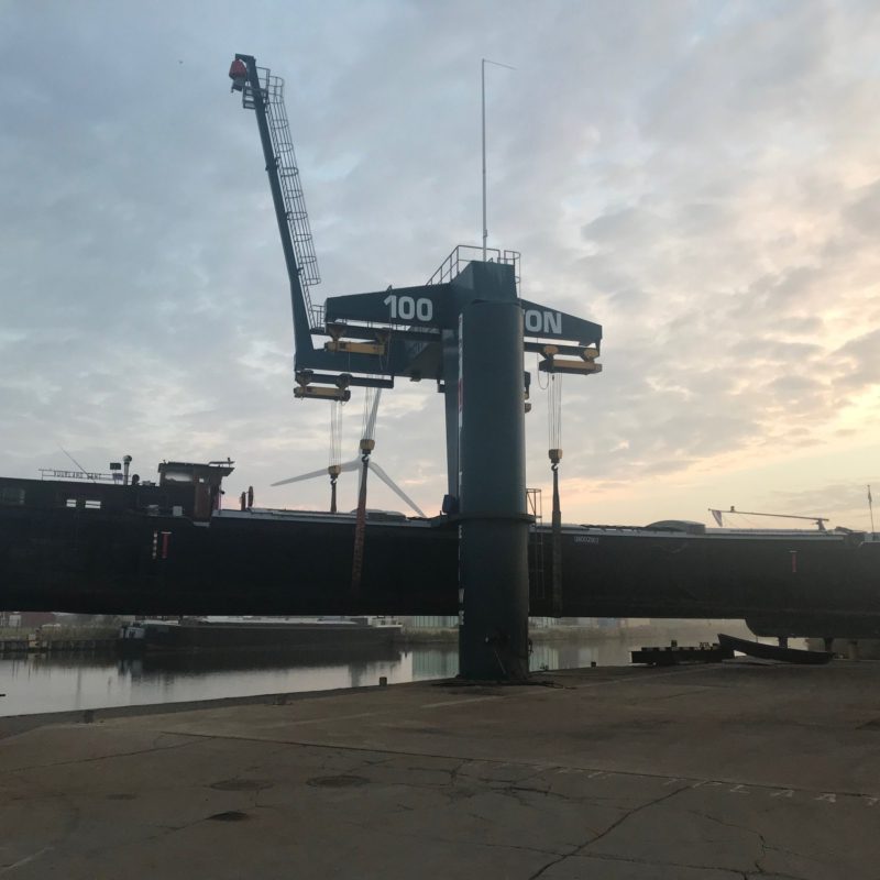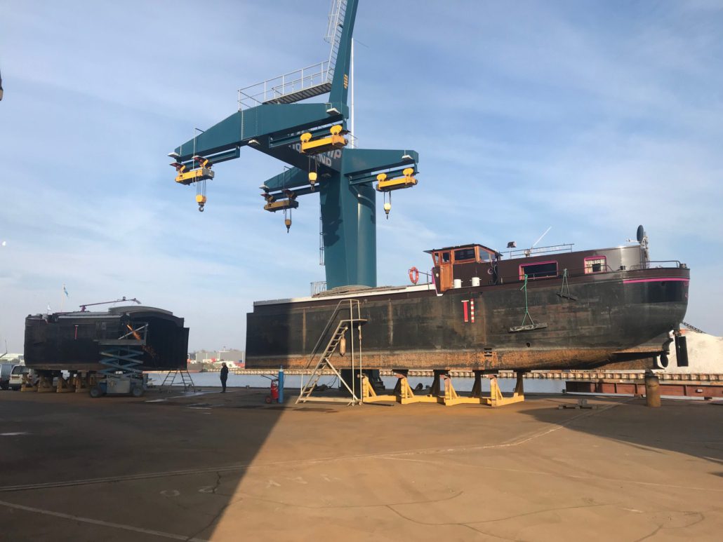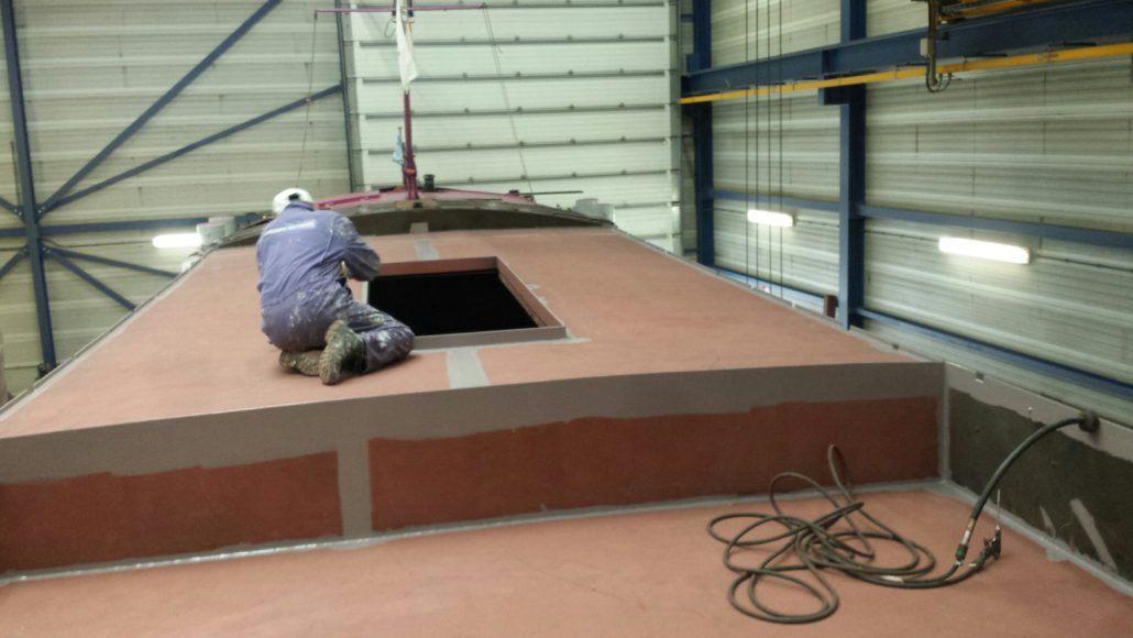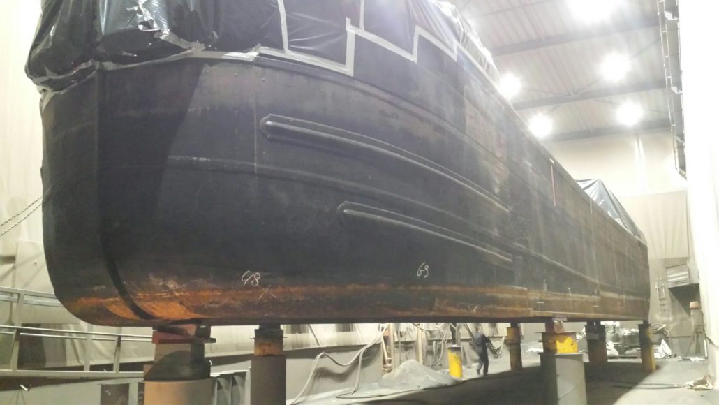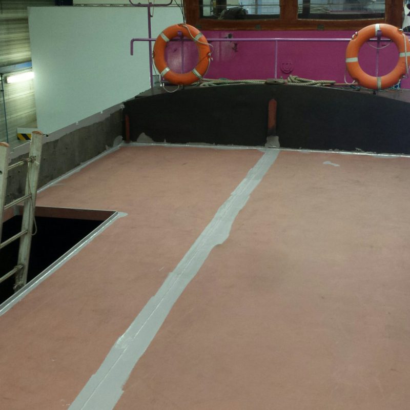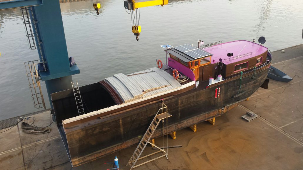 De spits “Vuurland” met een originele lengte van 39 meter is bij ons op de werf ingekort naar 30 meter, voorzien van een nieuw stalen dak ter vervanging van de aluminium luikenkap met verlaagd dakterras. De romp inclusief het onderwaterschip is na de noodzakelijke dubbelingen, gestraald en voorzien van een 3-laags Hempel verfsysteem.