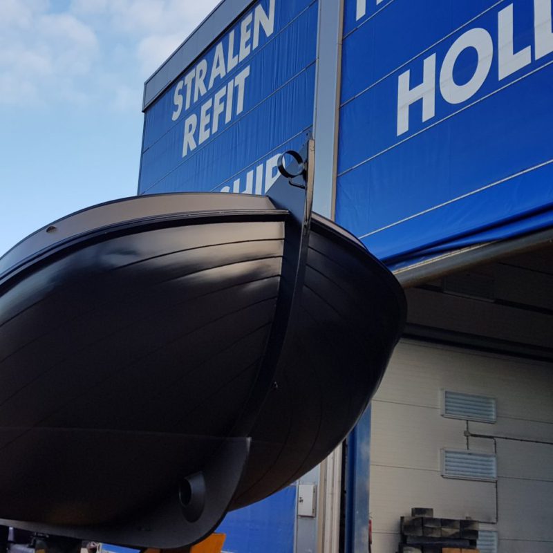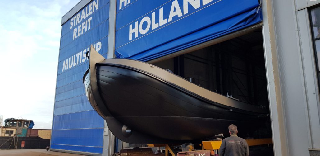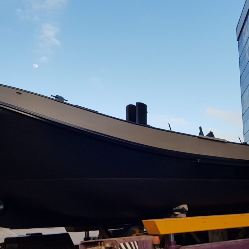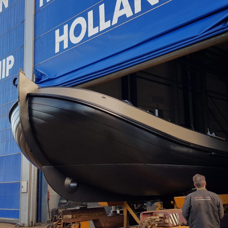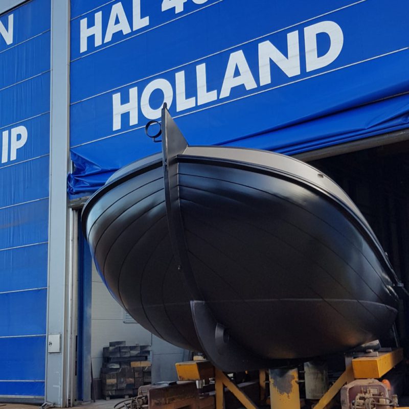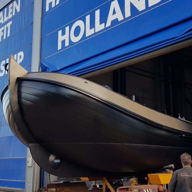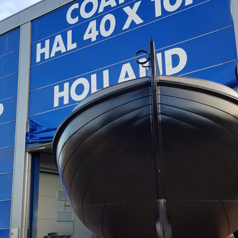 Deze prachtige Lemsteraak is door ons vakkundig onderhanden genomen. Zij is eerst van binnen en buiten gestraald (SA2.5). Na het nodige plamuurwerk is het schip voorzien van een hoogwaardig twee-componenten verfsysteem. En als eindlaag is het schip afgespoten in een Nelfadur ZG 2-componenten lak.