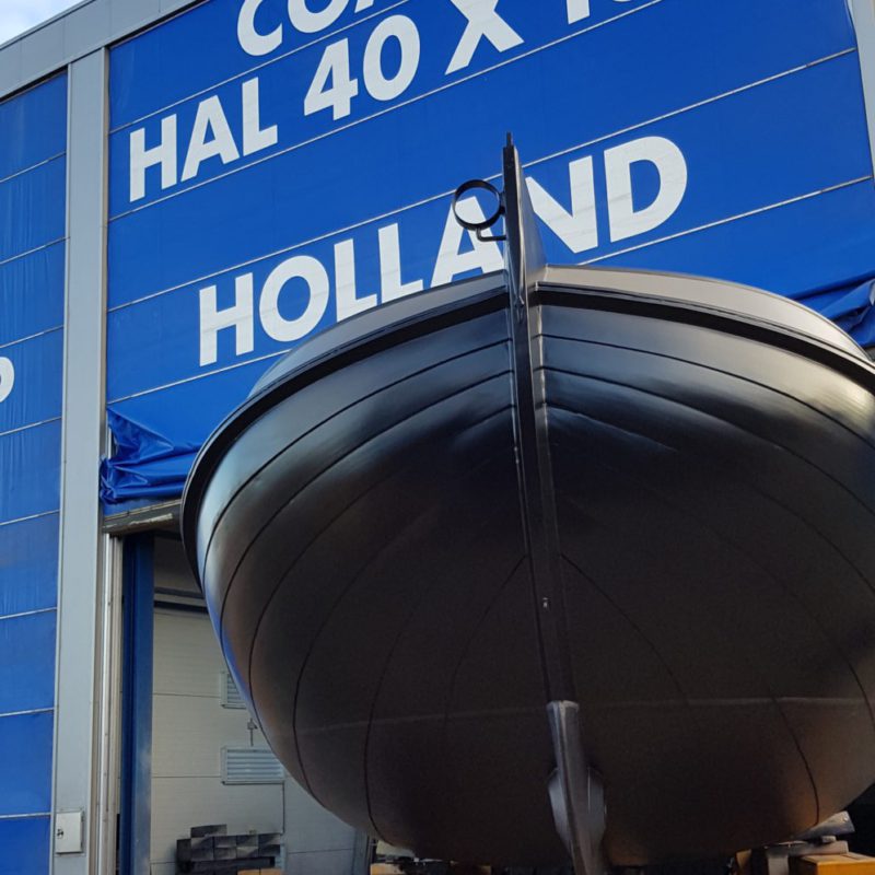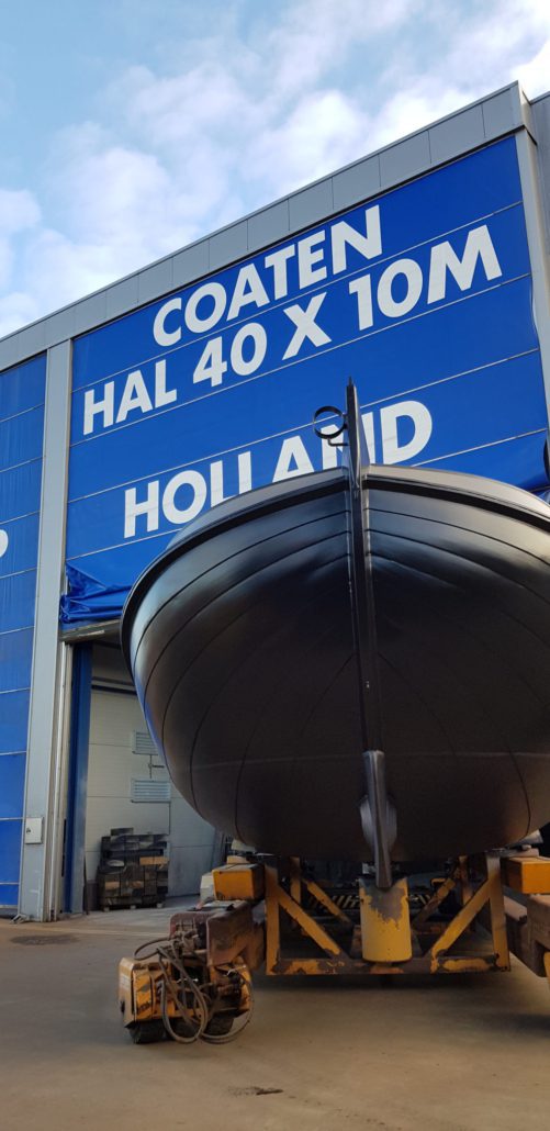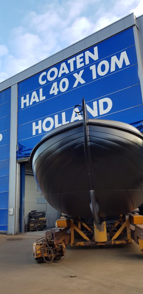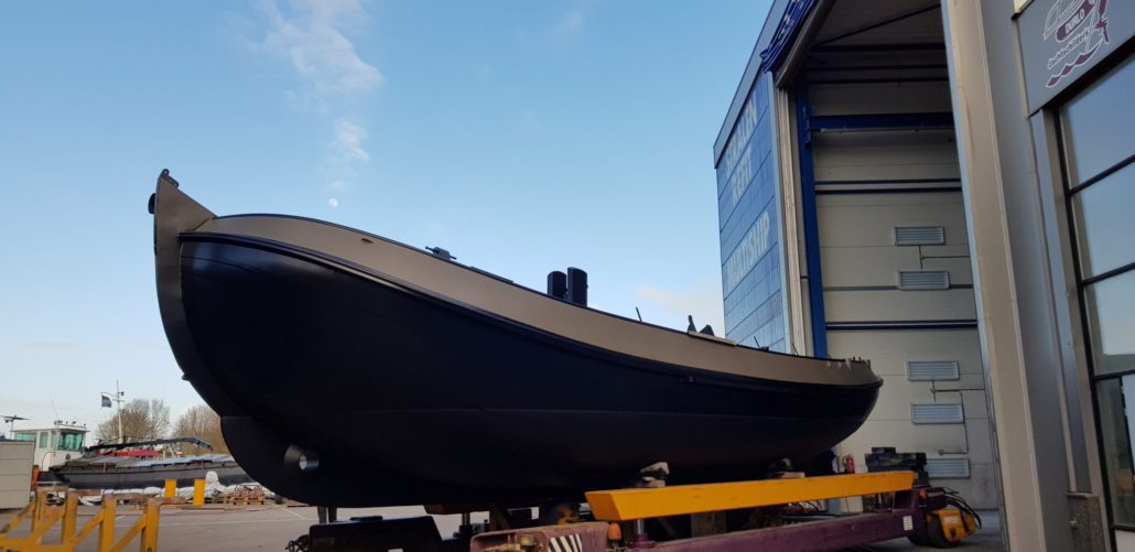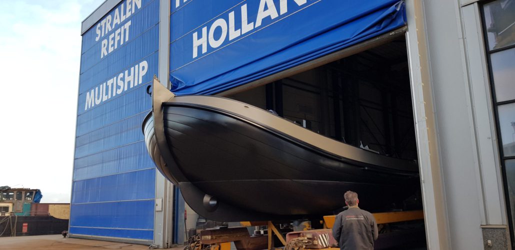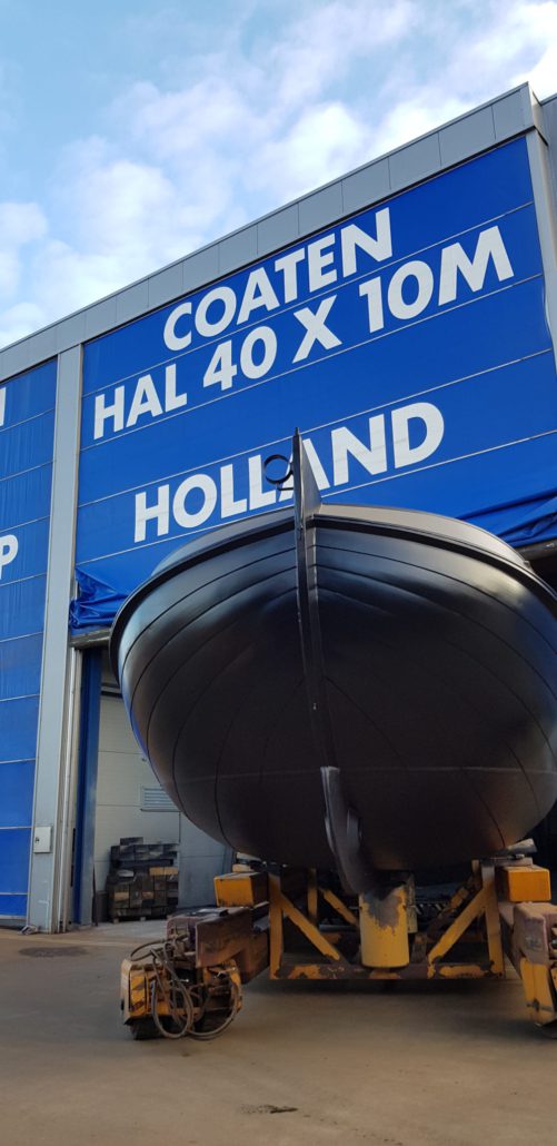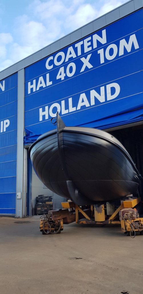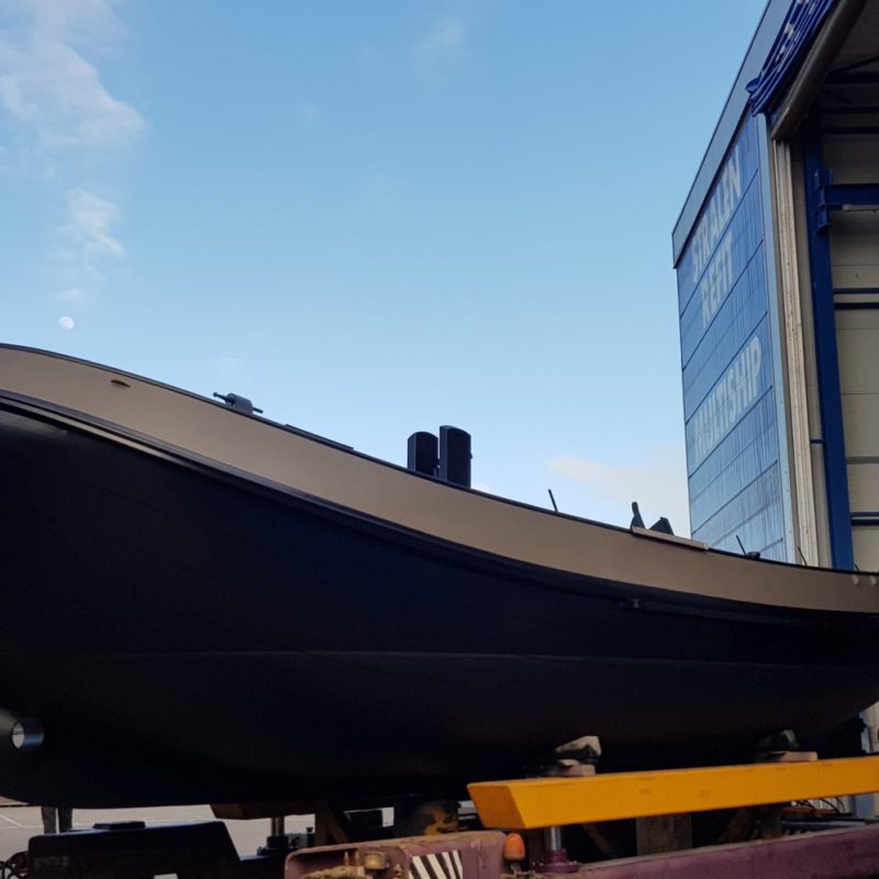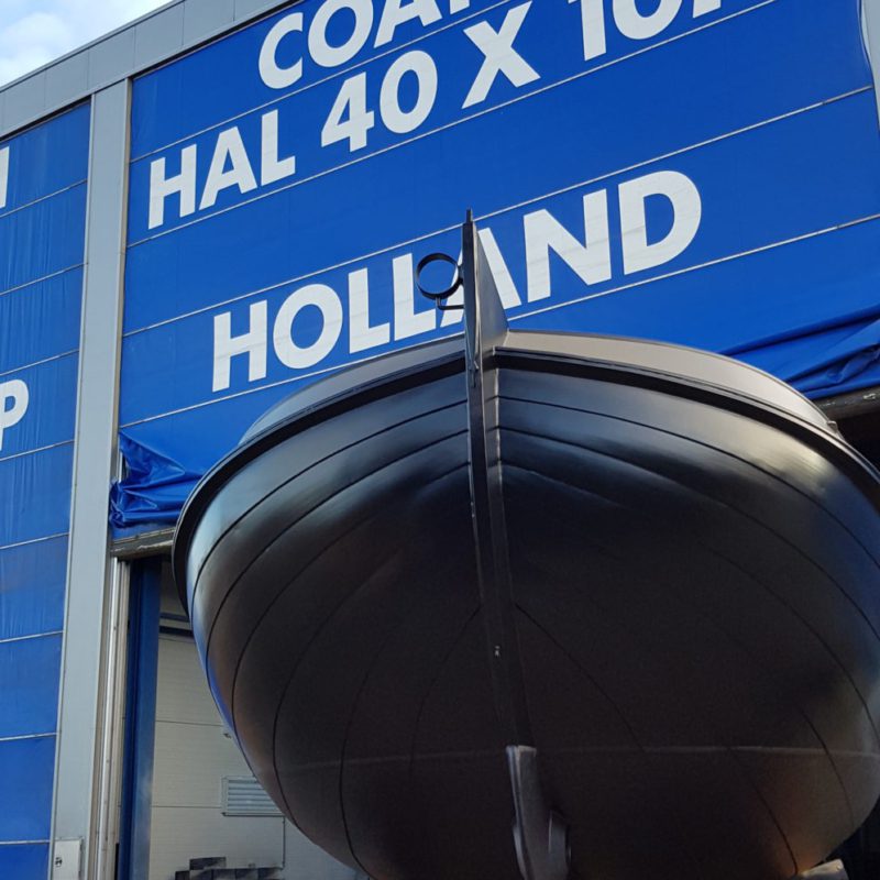 Deze prachtige Lemsteraak is door ons vakkundig onderhanden genomen. Zij is eerst van binnen en buiten gestraald (SA2.5). Na het nodige plamuurwerk is het schip voorzien van een hoogwaardig twee-componenten verfsysteem. En als eindlaag is het schip afgespoten in een Nelfadur ZG 2-componenten lak.