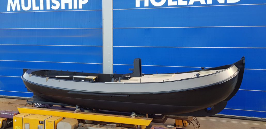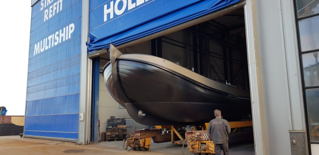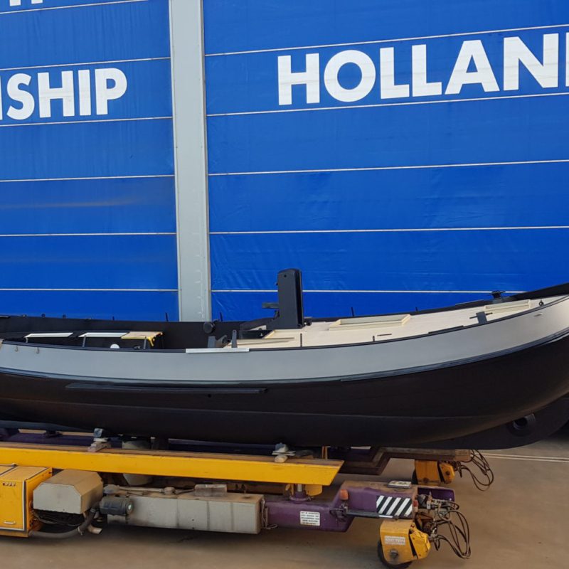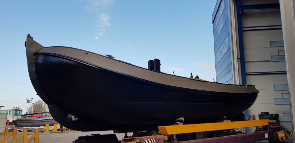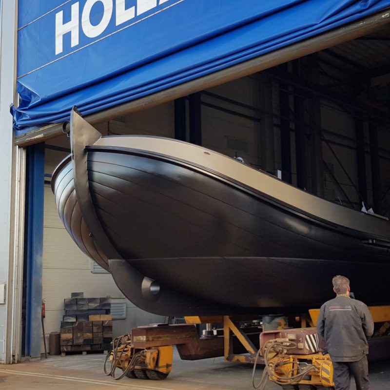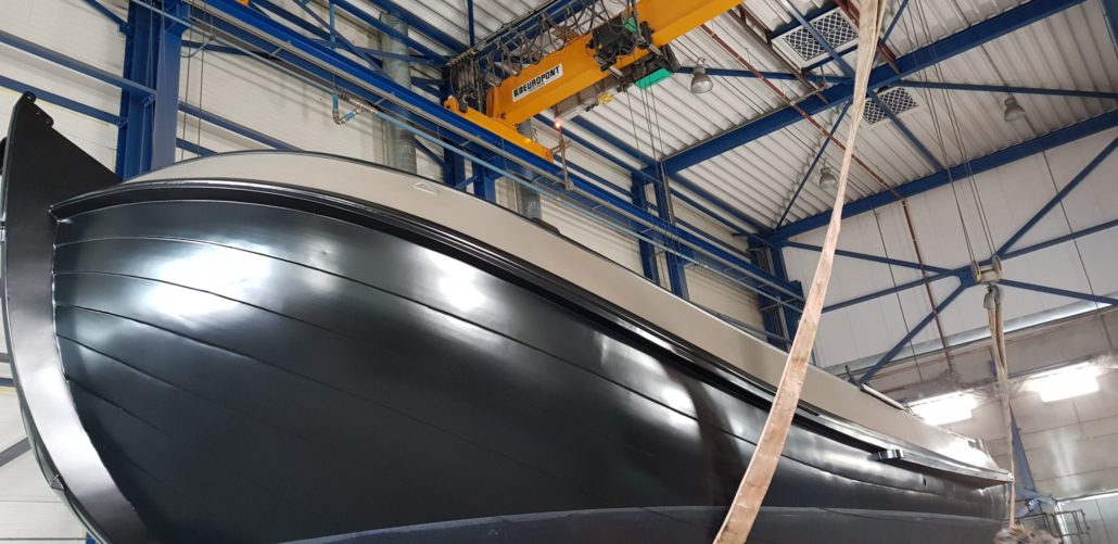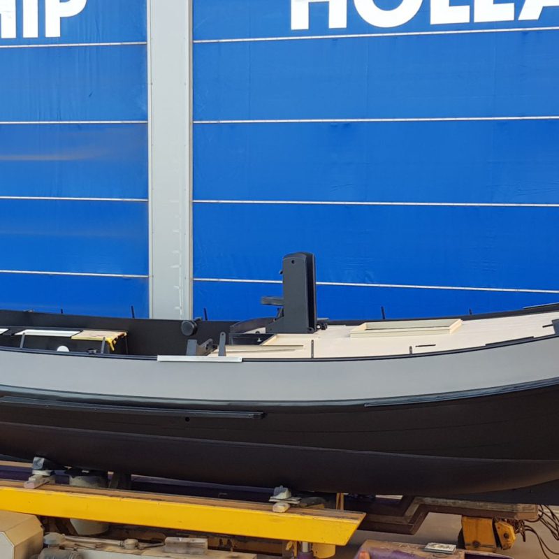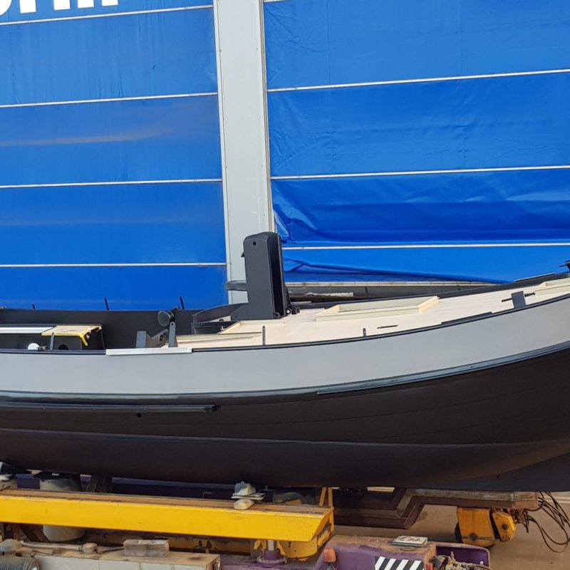 Deze prachtige Lemsteraak is door ons vakkundig onderhanden genomen. Zij is eerst van binnen en buiten gestraald (SA2.5). Na het nodige plamuurwerk is het schip voorzien van een hoogwaardig twee-componenten verfsysteem. En als eindlaag is het schip afgespoten in een Nelfadur ZG 2-componenten lak.