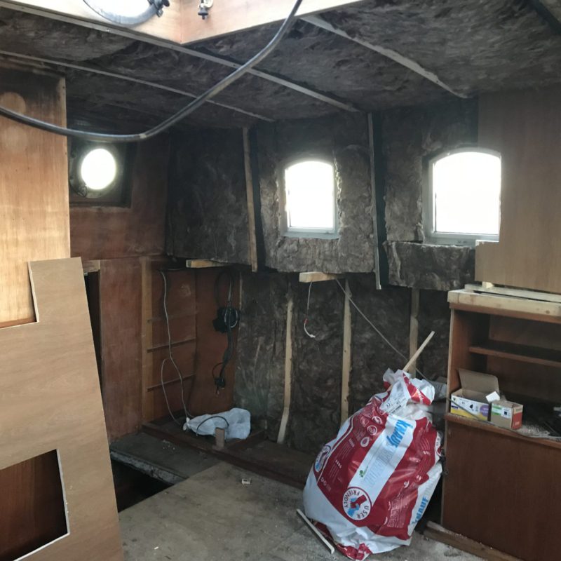 Op 24 januari kwam de gerestaureerde palingkotter EH23 “Meiny Aline” in het nieuws omdat er een brand aan boord had gewoed. De brandweer was er snel bij, maar de schade was helaas erg groot. Op 18 februari zijn we begonnen met de herstelwerkzaamheden. Ons werk bestond uit: nieuwe plafonds aanbrengen, huidbeplating met grondhout en isolatie plaatsen en afwerken. Nieuwe vloerdelen plaatsen, ramen vervangen, tapijt vervangen en het nodige schilderwerk. Na een relatief korte periode van maar 4 weken is zij op 18 maart weer te water gelaten. Het lijkt alsof er niets is gebeurt!