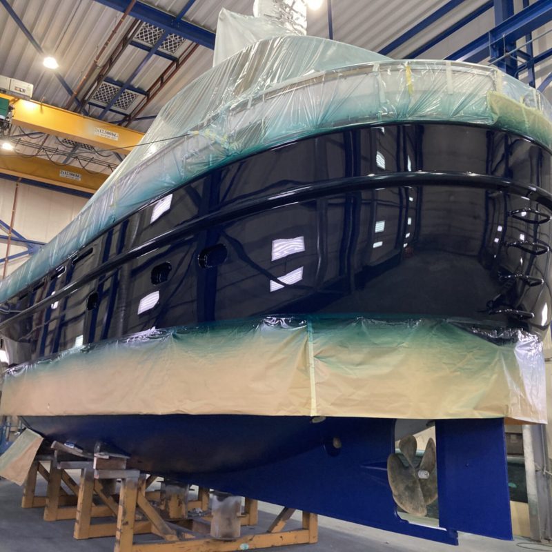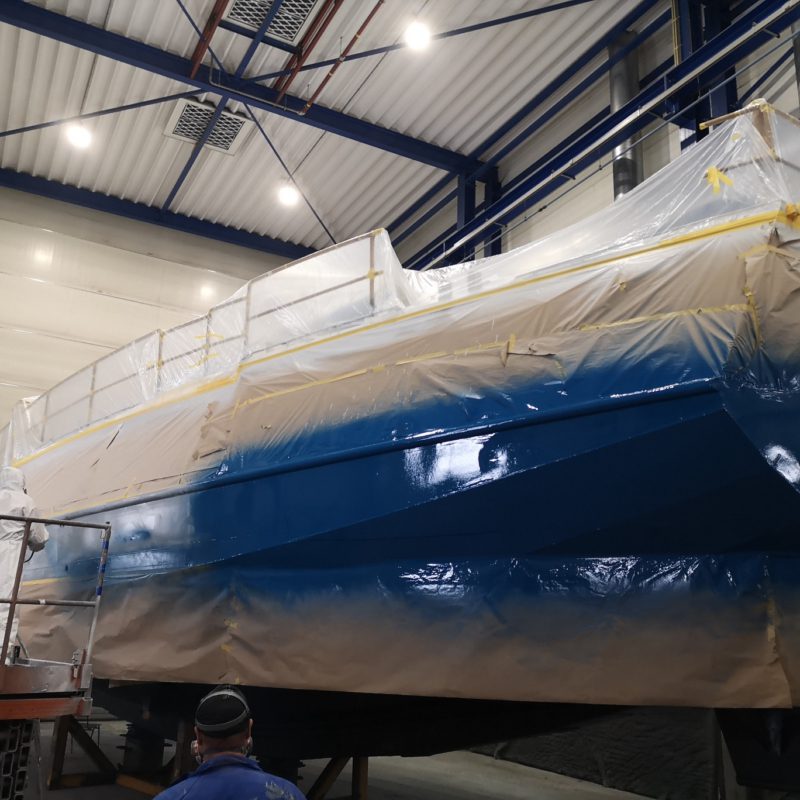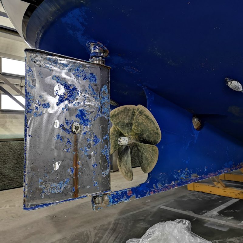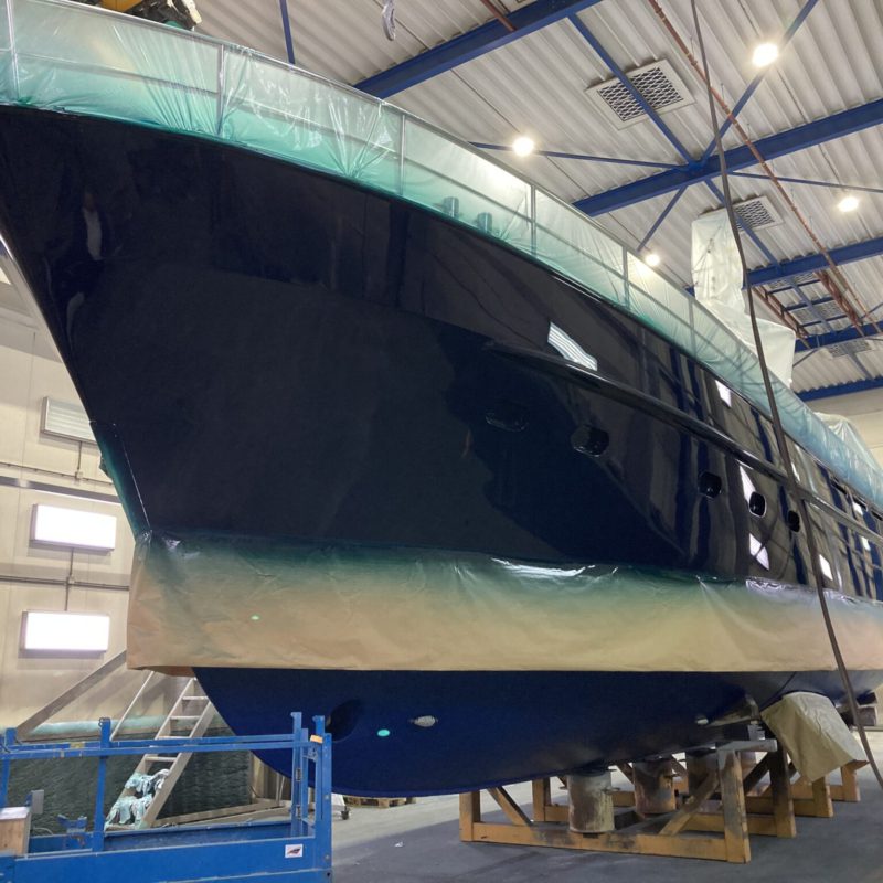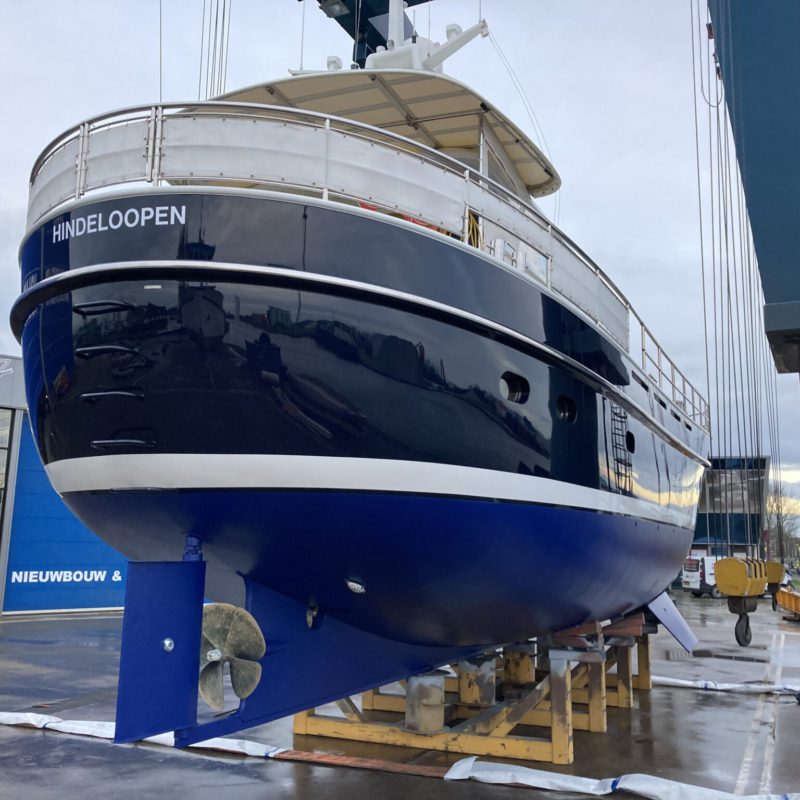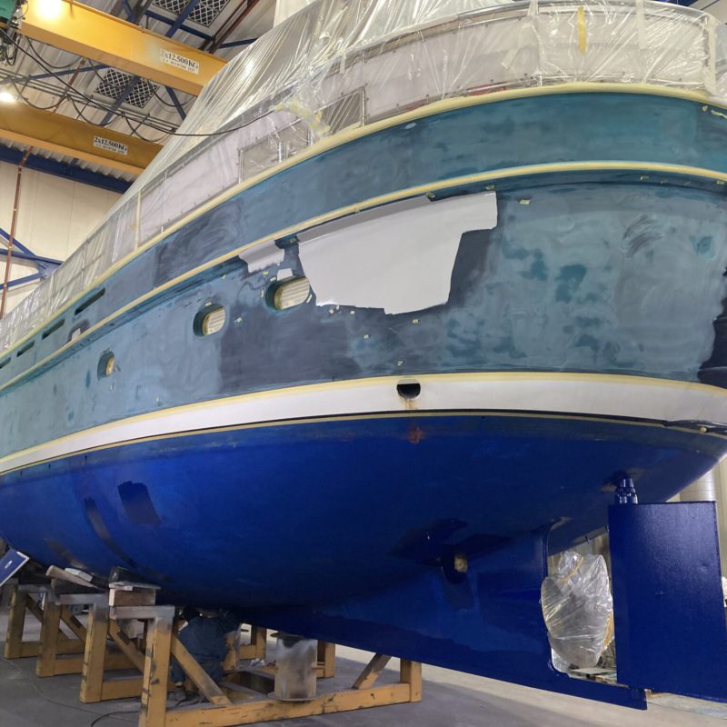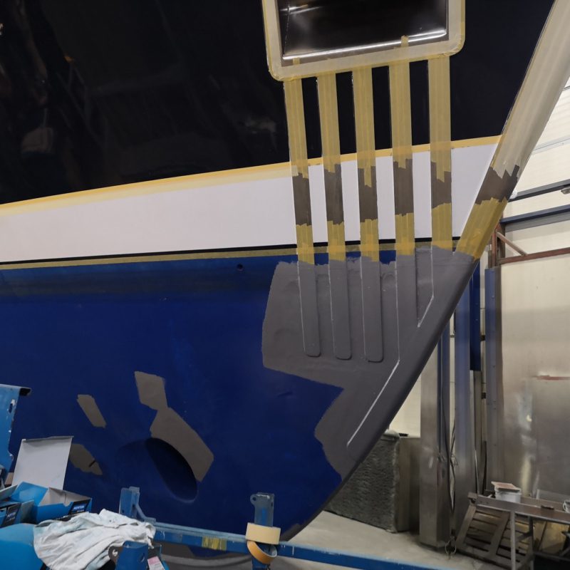 Dit prachtige motorjacht was aangevaren en had daardoor schade opgelopen. Wij hebben de schadeplekken hersteld door middel van schuren en plamuren. Daarna zijn de plekken voorbehandeld met primers zodat het verfsysteem weer opgebouwd is. Vervolgens is de gehele romp geschuurd en afgespoten in de Awlgrip Topcoat, kleur Majestic Blue. Deze klus is uitgevoerd met jachtschilder René Hoekstra. Tegelijkertijd konden wij het onderwaterschip ook onder handen nemen en is er een nieuwe laag antifouling aangebracht. Is het geen schitterend plaatje geworden?