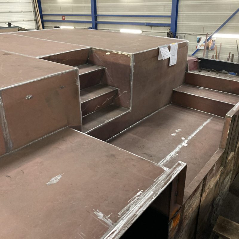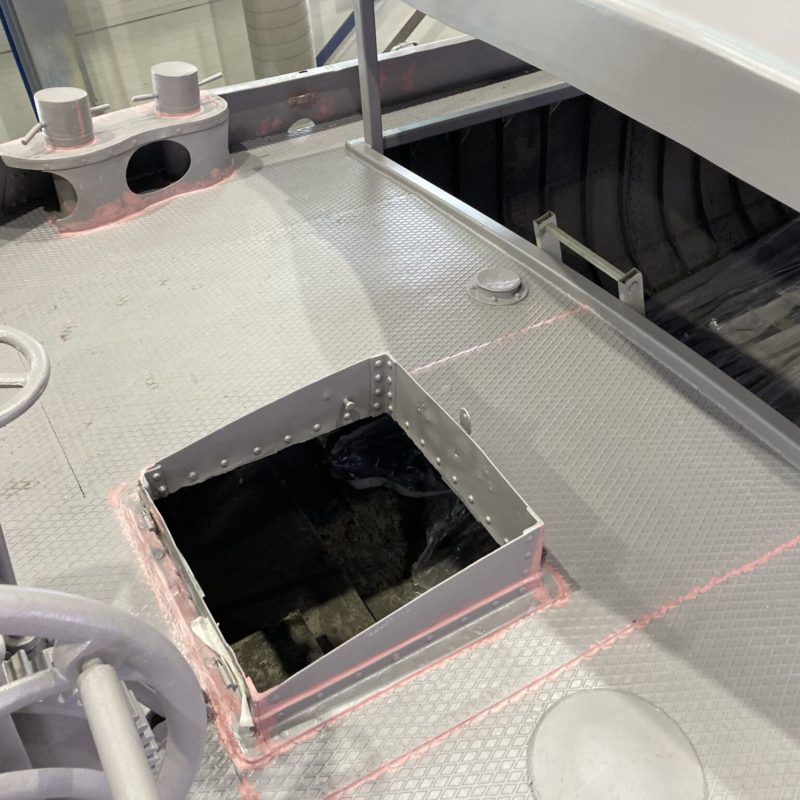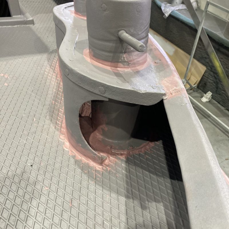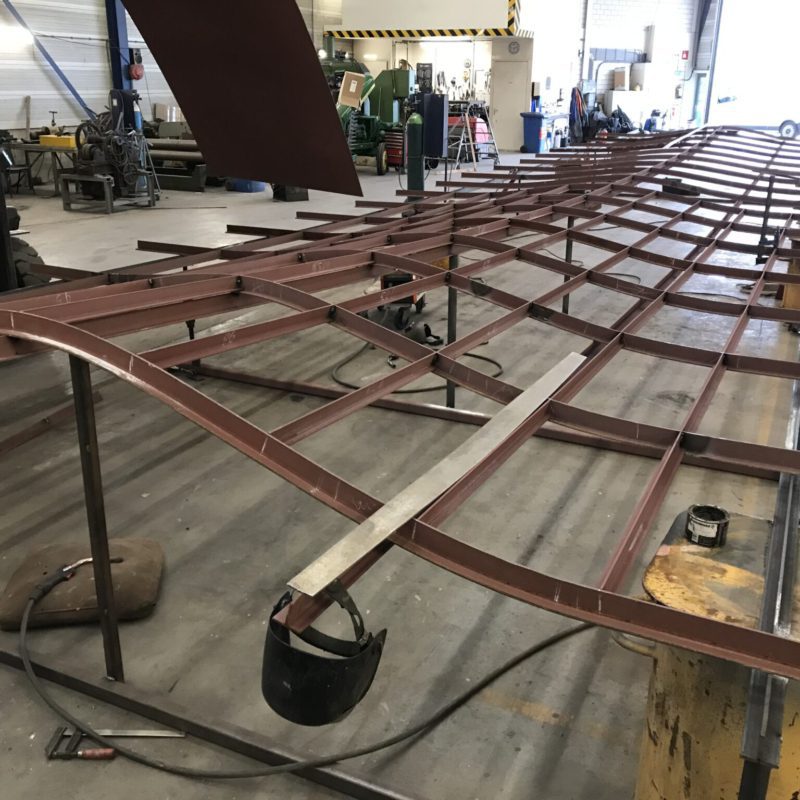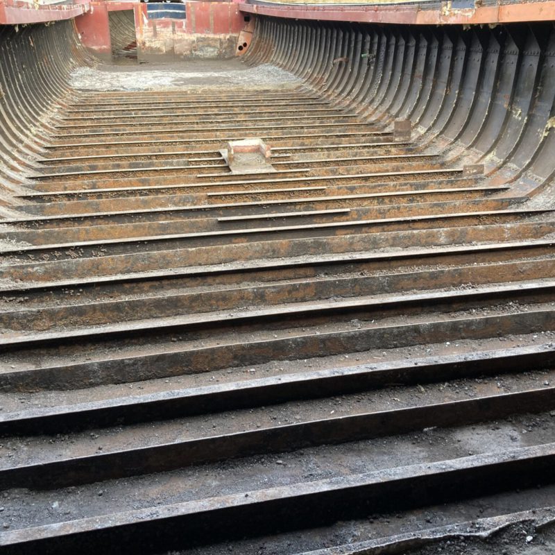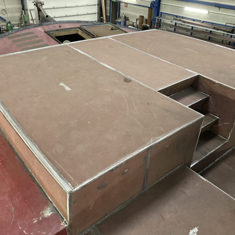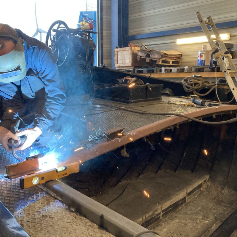 De afgelopen periode hebben wij een grote refit van het woonschip Trinity uitgevoerd. Eerst hebben we het polyester dak met hout, kozijnen met glas, betimmering, natuurstenen badkamer, technische installatie en betonnen vloer verwijderd. Daarna is er een nieuw stalen zadeldak gemaakt en geplaatst. Verder hebben wij de noodzakelijke staalreparaties uitgevoerd. Vervolgens hebben wij de gehele buitenzijde gestraald en voorzien van een Hempel verfsysteem in 4 lagen. Het dak en de romp is afgespoten in een Hempathane hoogglans aflak. De dekken zijn voorzien van een antislip conservering.