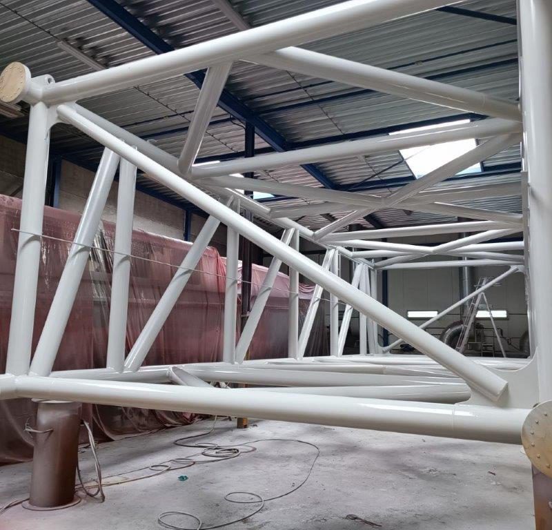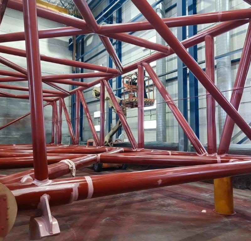 Voor onze gewaardeerde klant Seafox Operations hebben wij drie grote kraansecties gestraald (SA2,5) en in een Jotun verfsysteem gezet. Het verfsysteem is aangebracht volgens ISO12944-2 corrosieklasse C5. De afmetingen per sectie zijn 15 x 5 x 4 meter en het gewicht per stuk is 15 ton. Het verfsysteem bestaat uit 2 lagen Jotamastic 90 en 1 laag Jotun Hardtop XP.