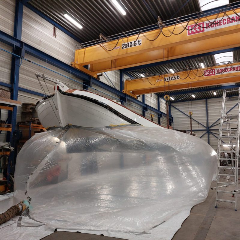 Het onderwaterschip van het skûtsje van Akkrum is door ons gerepareerd. Na de laswerkzaamheden hebben we de reparatie gestraald en voorzien van een compleet verfsysteem. Het gehele onderwaterschip is daarna voorzien van een verse laag Hempel Silicone X3+ Coating. De binnenkant van het ruim hebben we het vlak gestraald en gespoten in een 3 laags Hempel systeem. Tussendoor hebben de vrijwilligers van het skûtsje de buitenkant geschilderd