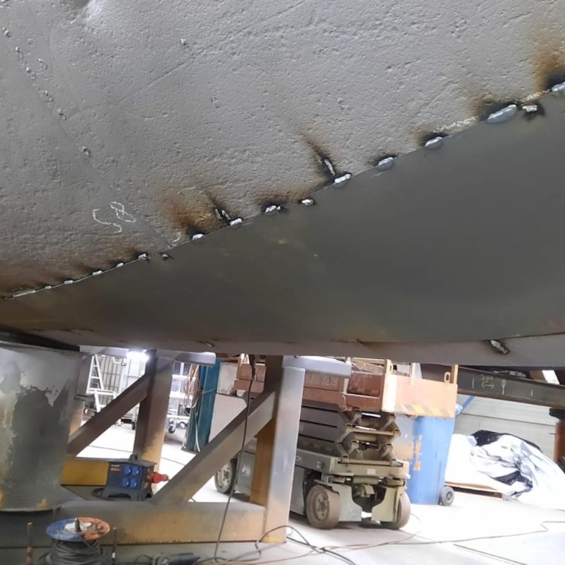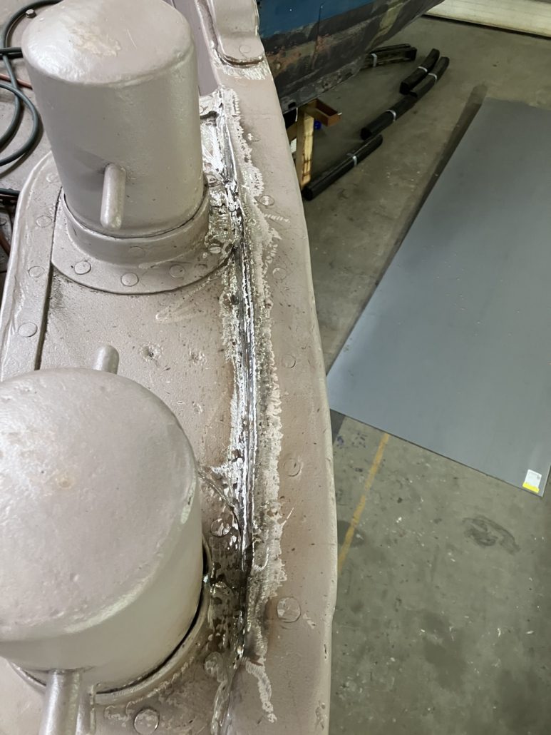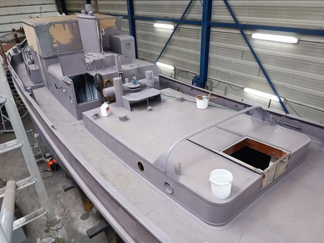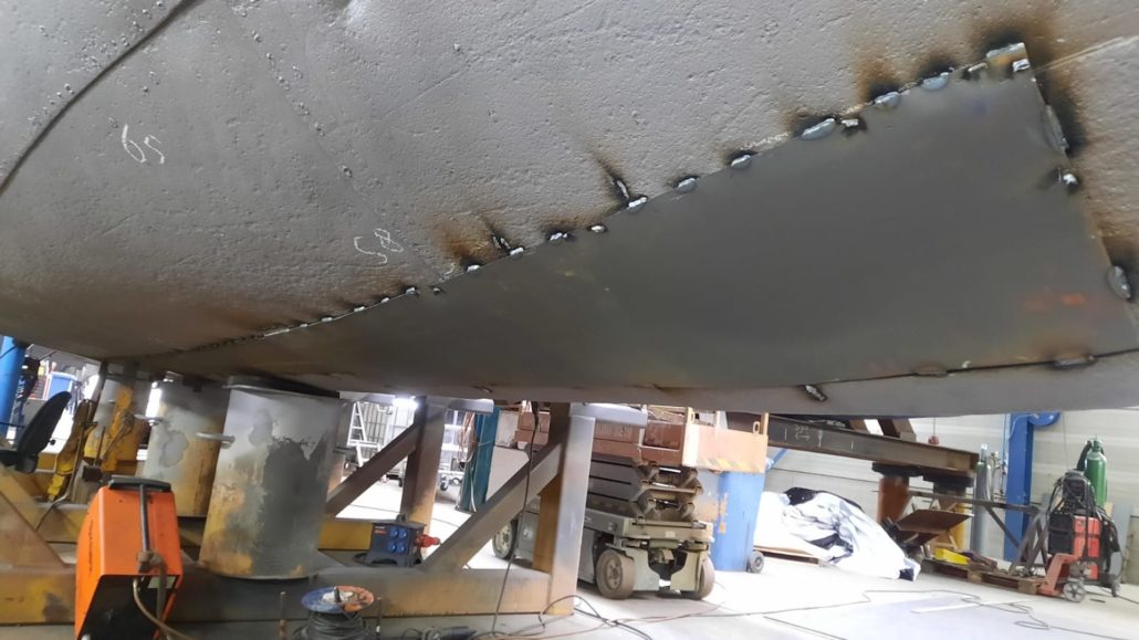 Een van de belangrijkste herstelwerkzaamheden betrof het berghout, de beschermende rand rondom het schip. Het oude berghout is volledig verwijderd en vervangen door nieuw, plat staal. Dit is met grote zorg rond gevormd en in lijn gebracht met de oorspronkelijke zeeg van het schip. Het geheel is zorgvuldig afgelast en geslepen, zodat het perfect aansluit op de romp en het authentieke karakter van de Tijma behouden blijft.