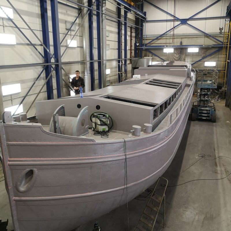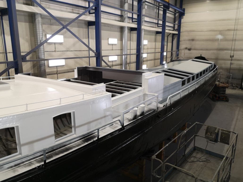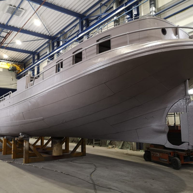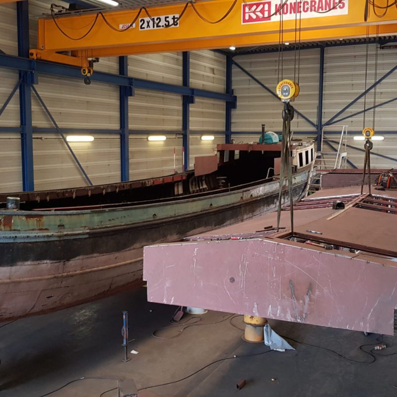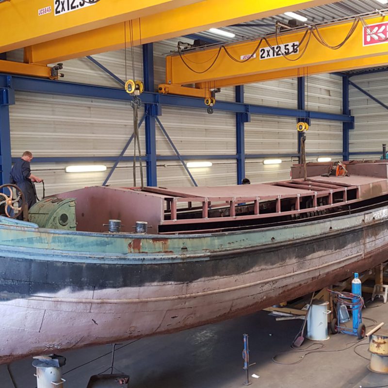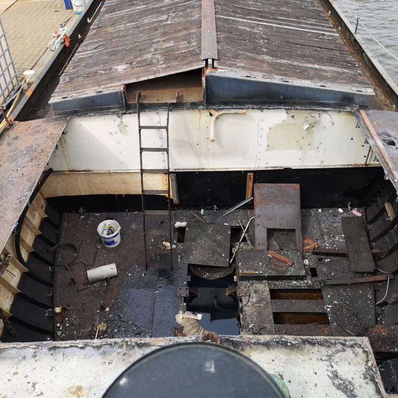 Voor een klant in Amsterdam hebben wij de luxemotor “Risico” grondig verbouwd. Het schip heeft een nieuwe luikenkap gekregen en ook de den is vernieuwd. Het stuurhuis is vernieuwd. Verder zijn de relingen vernieuwd en de bolders zijn gerestaureerd. Het schip is ontdaan van alle overbodige delen om er een woonschip van te maken. Daarna is het gehele schip aan de binnen- en buitenzijde gestraald en voorzien van een twee-componenten verfsysteem van Hempel en Nelf.