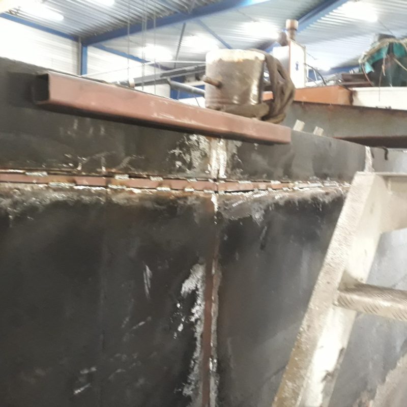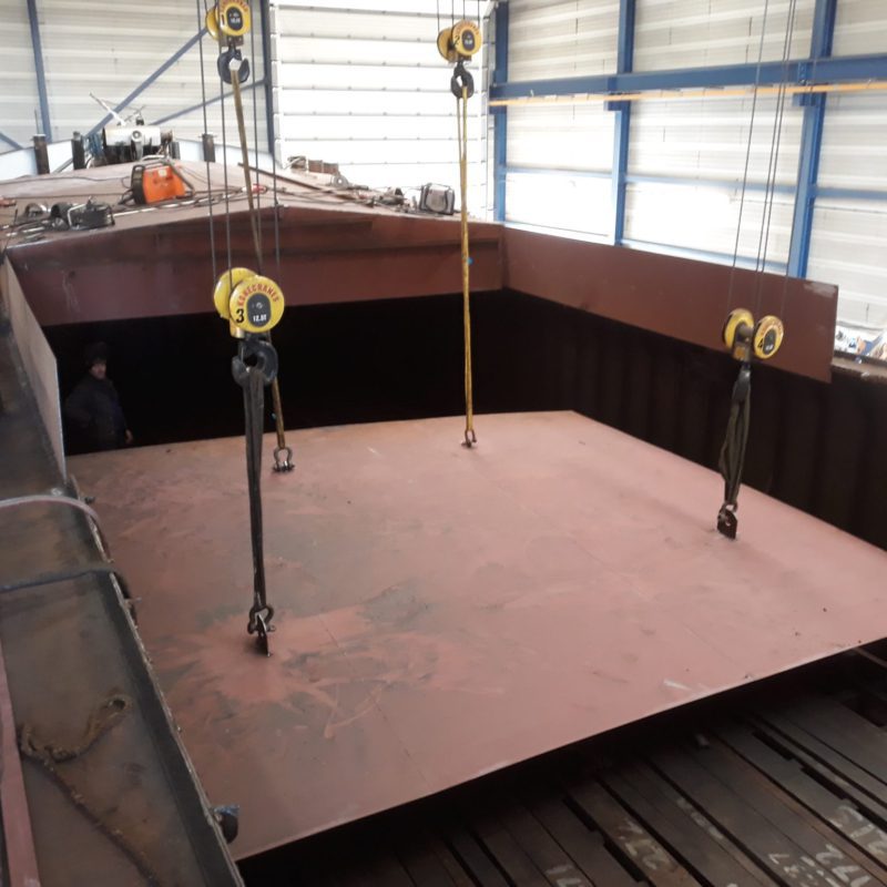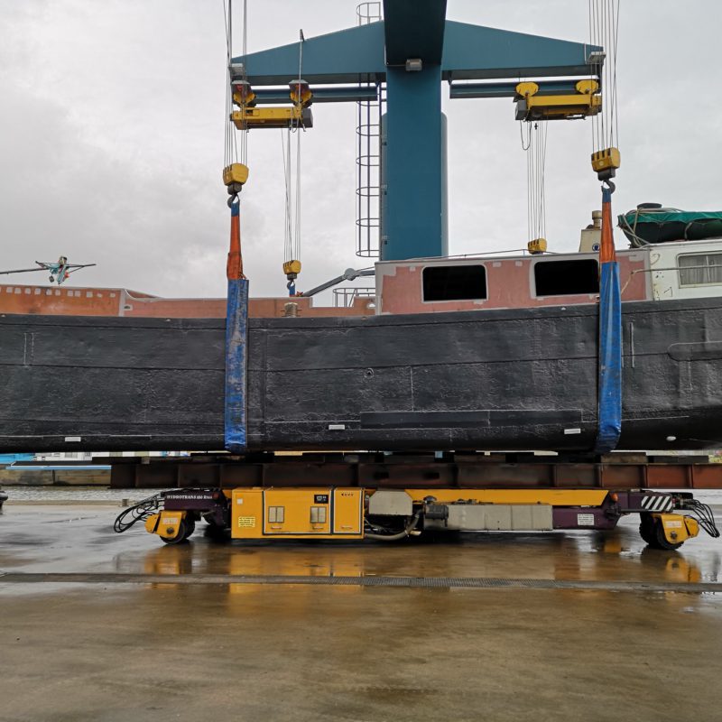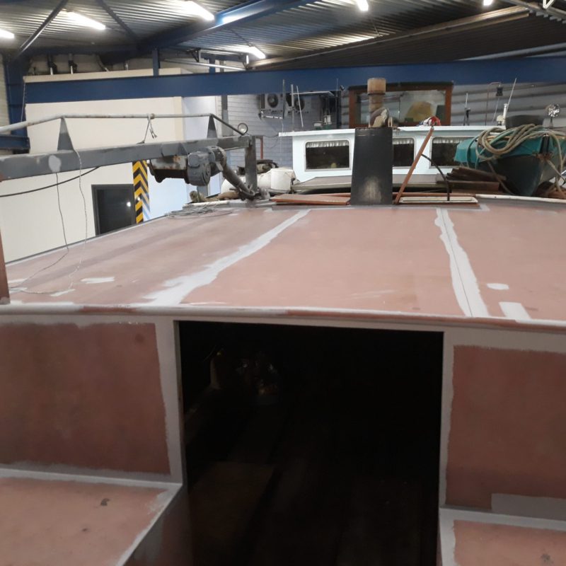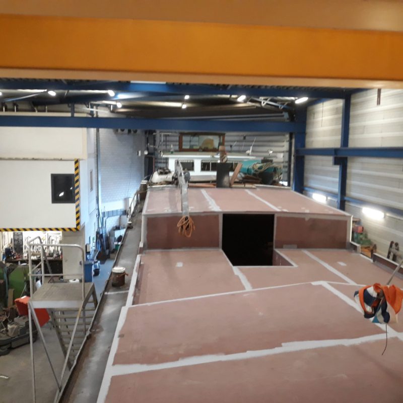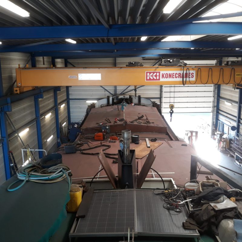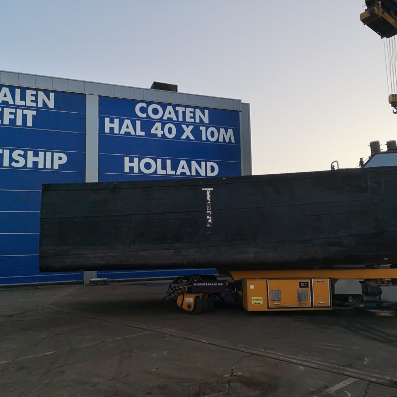 Het motortankschip Avontuur is bij ons op de werf omgebouwd naar een woonschip. Eerst zijn de twee stalen tanken met een gewicht van 18.000 kg verwijderd. Daarna is het schip in het water doormidden gesneden en zijn beide helften uit het water getild. Het schip is 20 meter(!) ingekort en er is een nieuwe kap en roef op gemaakt. Het onderwaterschip en de romp zijn gespoten in een 2-laags Hempel systeem. het schip gaat een mooi tweede leven tegemoet in Engeland.